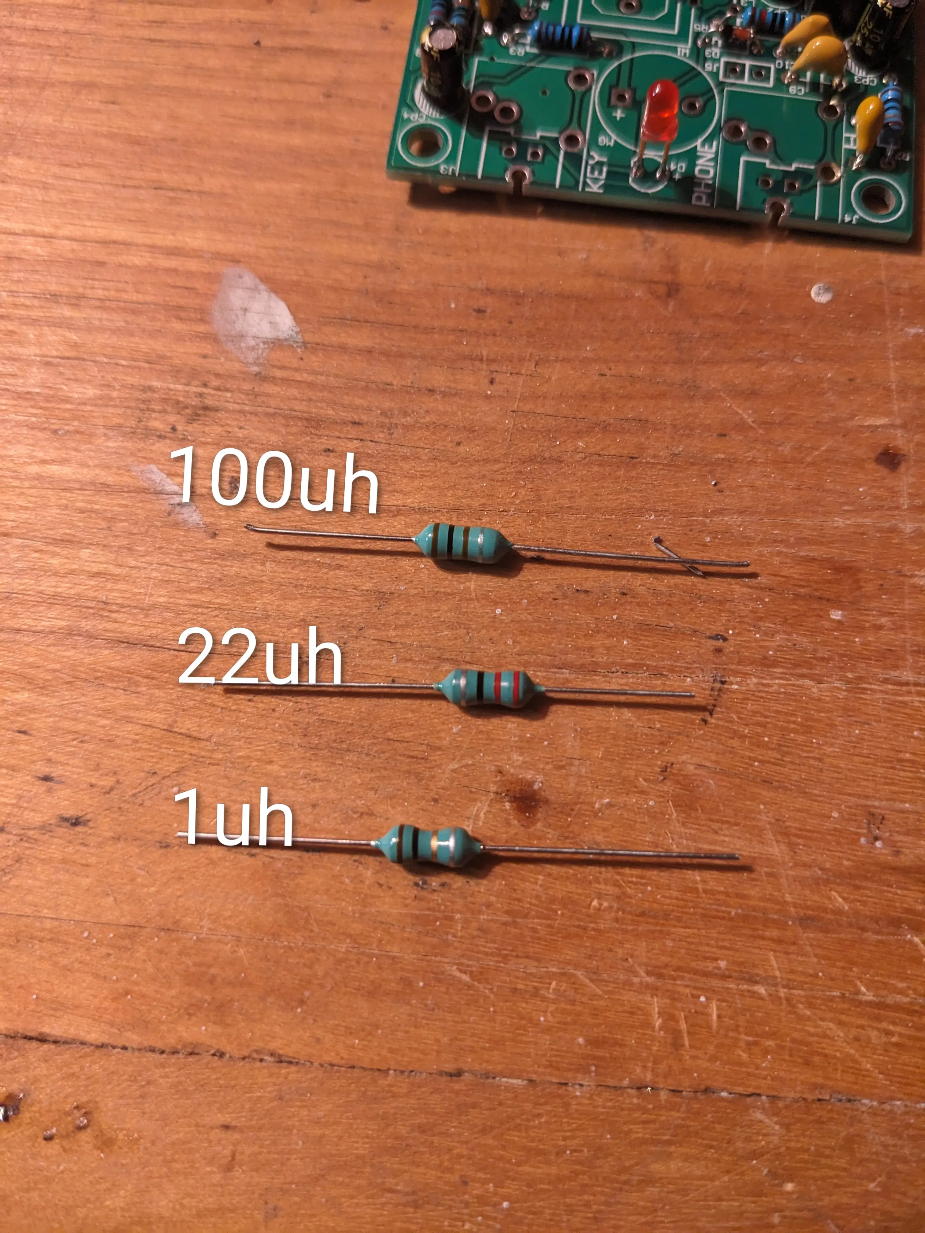 Another slightly confusing step was installing the inductors. I was having some difficulty finding and identifying the inductors by color codes or with measurement and finding the appropriate place to install them on the board. In the picture below, I labeled them to make installing them easier.