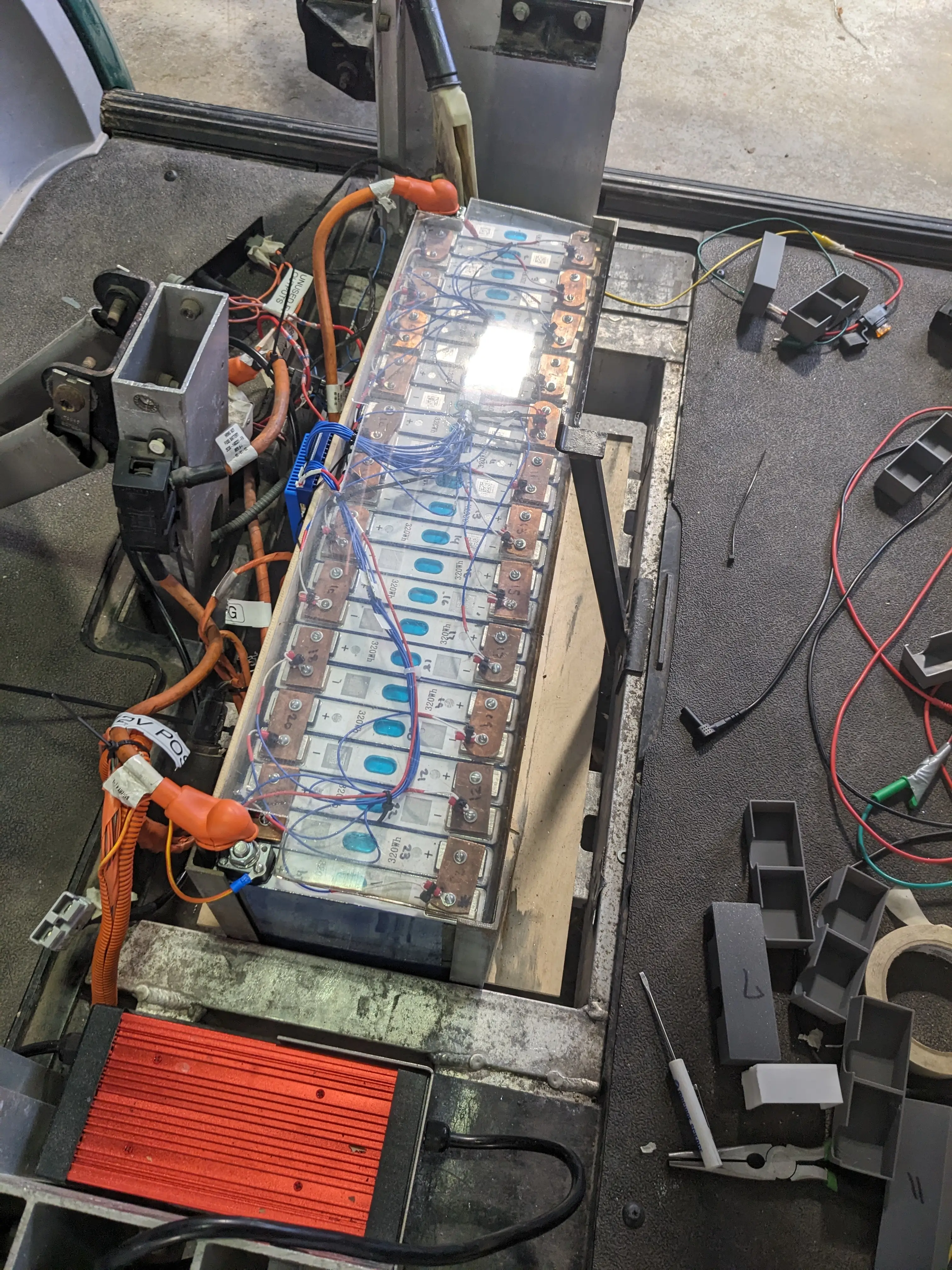 By Tuesday, I had drilled and tapped yet another prismatic cell to be the replacement, and on Wednesday, Jonas and I got it hooked up (externally) to the rest of the cells in the battery