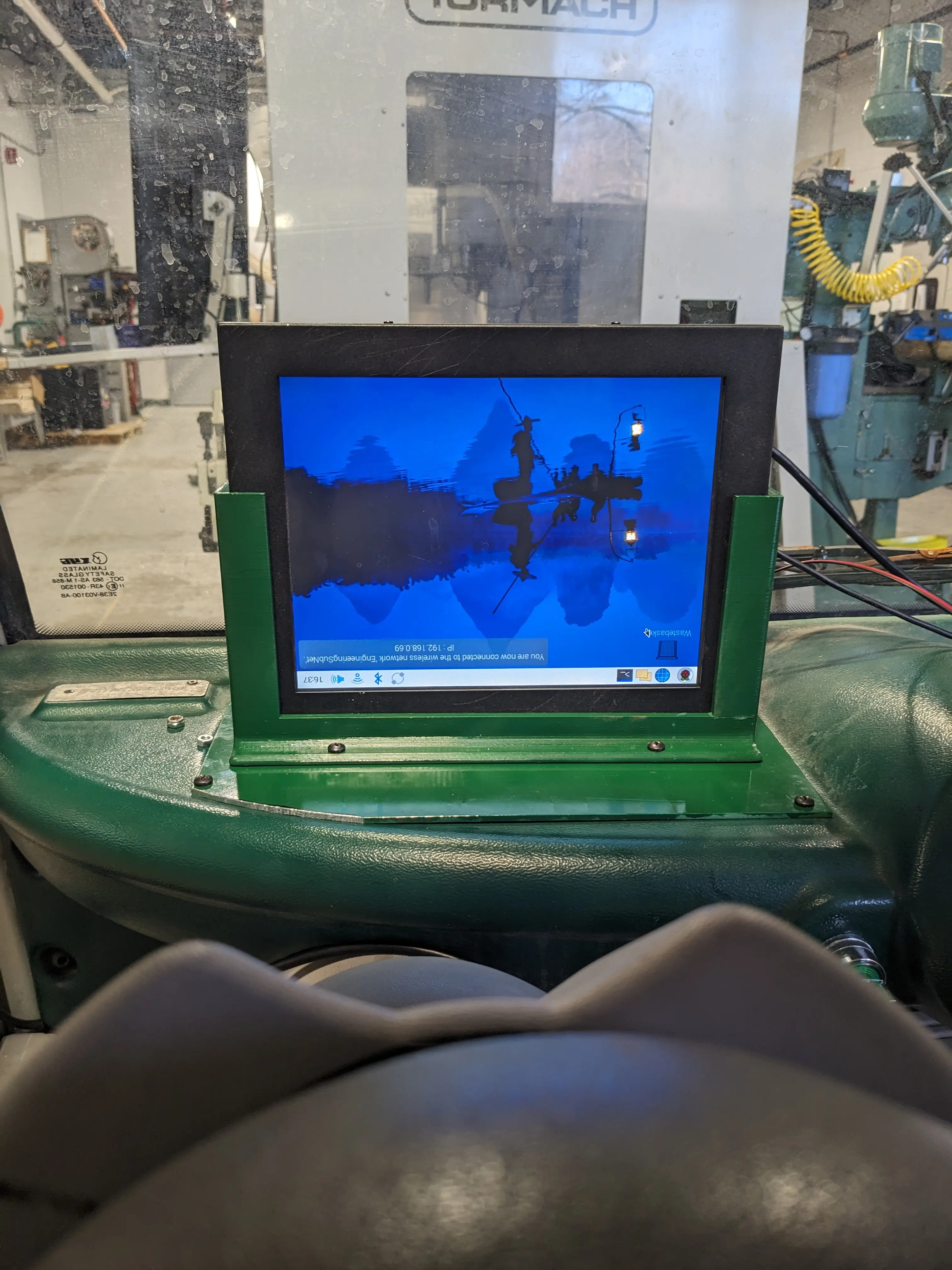 To do this, Jonas designed and printed out a 3D mount for the display. Later, he water jet cut a piece of steel to sit on the dashboard that will mount to it.
