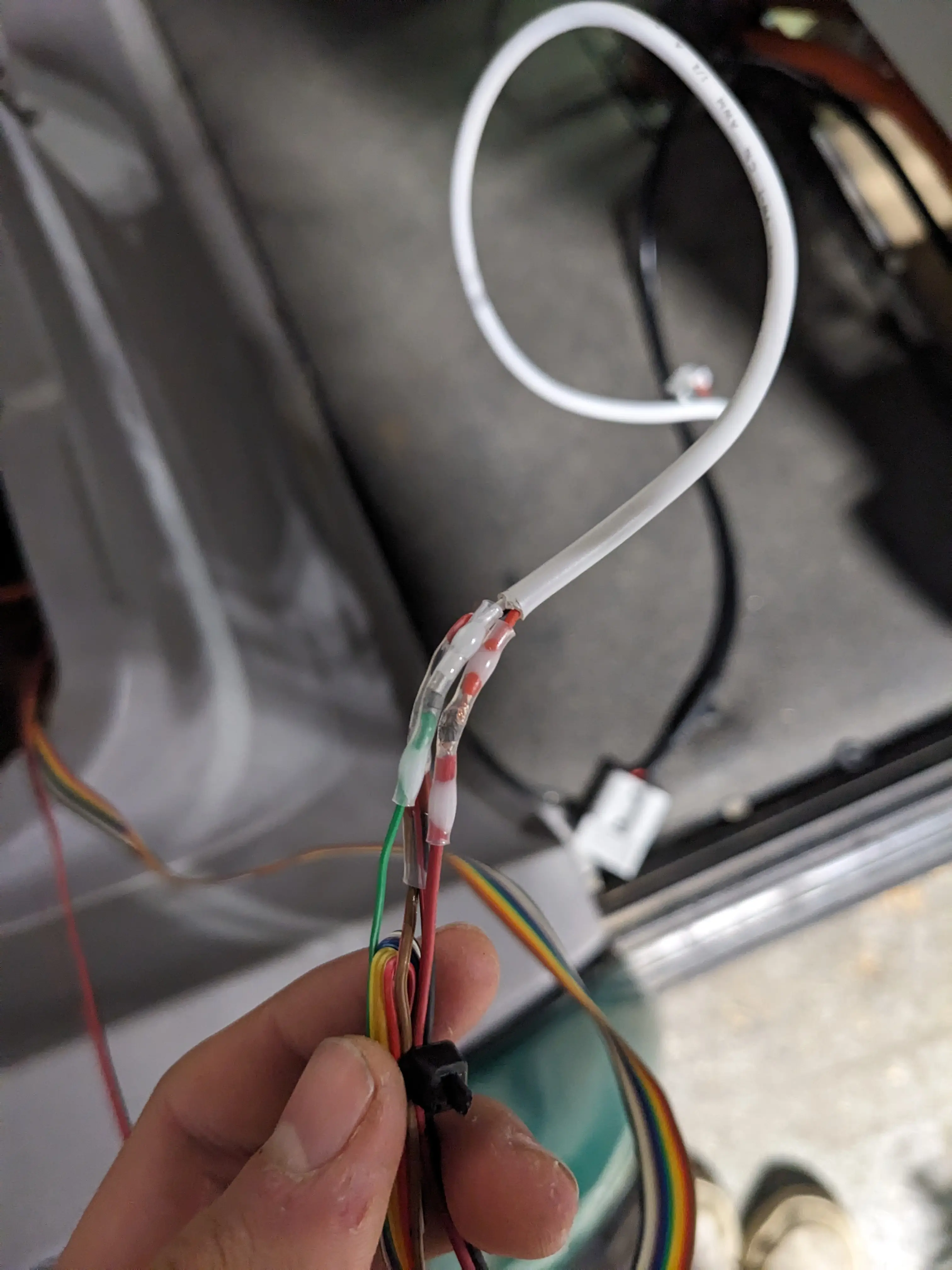 After the PCB was (nearly) completed, I crimped some JST connectors onto the backup alarm’s power wires and Jonas ran some power cables underneath the car in order to power the board and also the alarm.