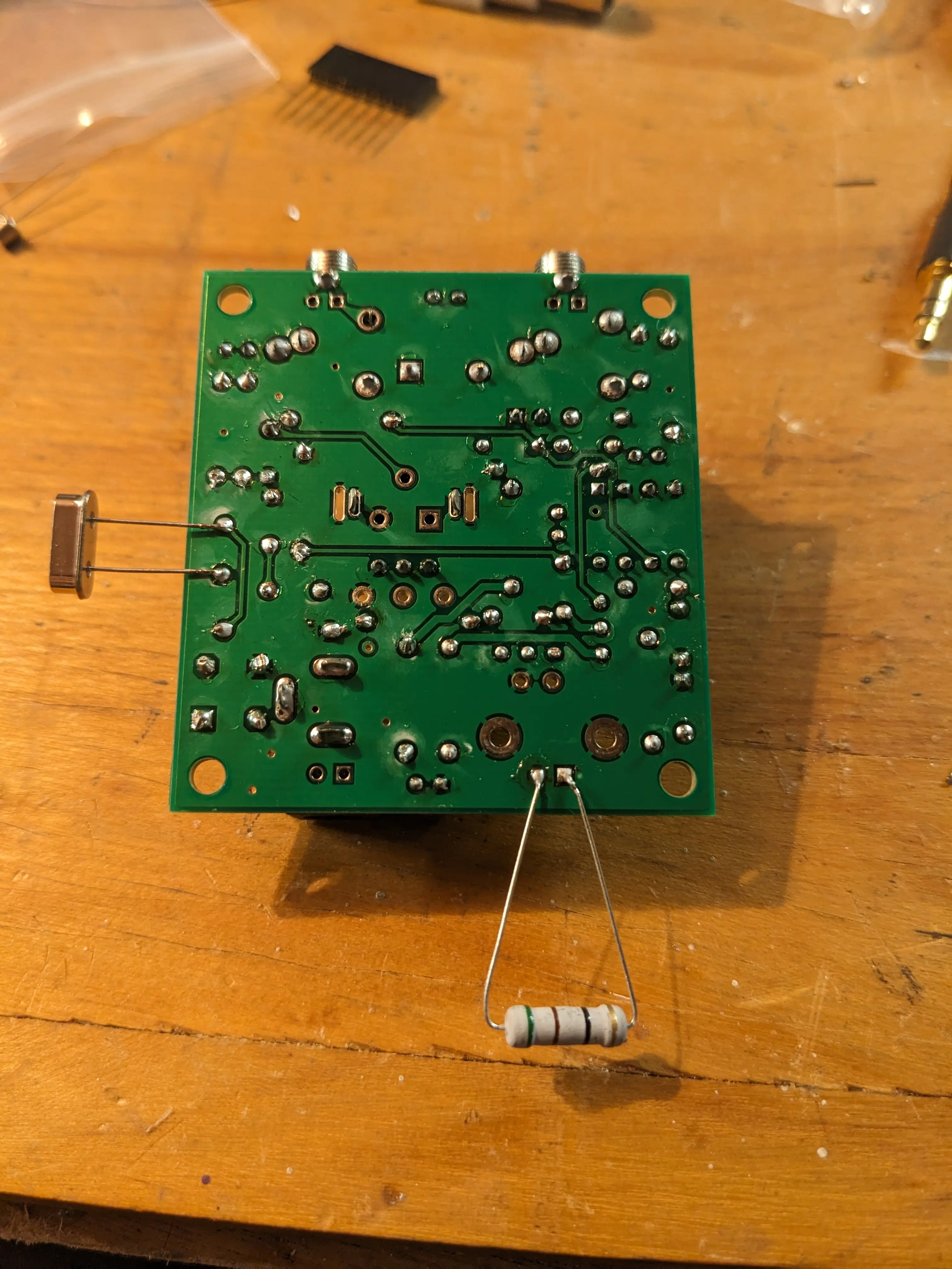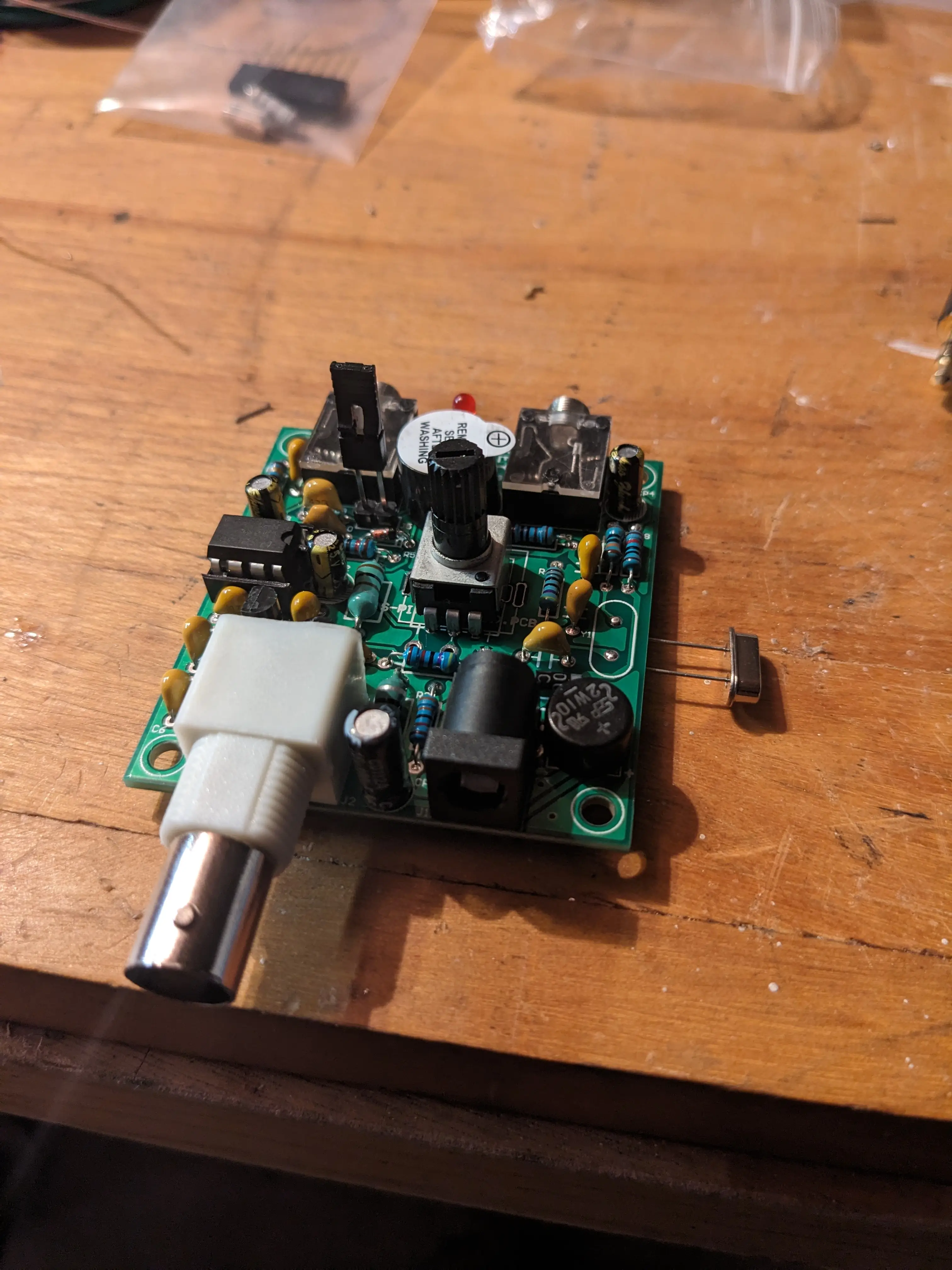 I chose the 7.050 MHz crystal, but installed it in a way that allows it to be easily hot-swapped if needed.